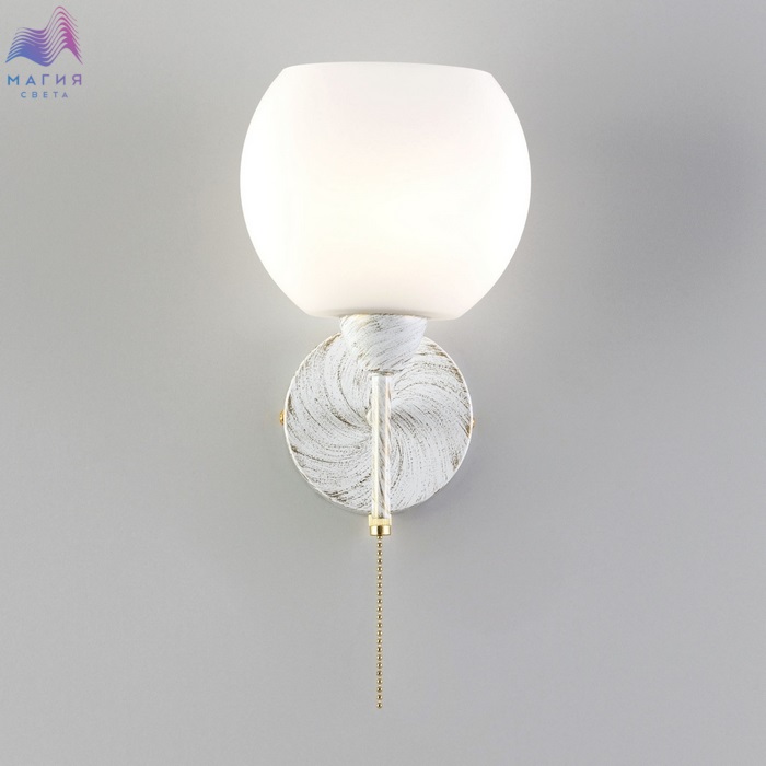 Бра Citilux Флорида CL148310. Материал: металл/стекло. Цвет: белый с золотой патиной/белый. На корпусе установлен выключатель.
