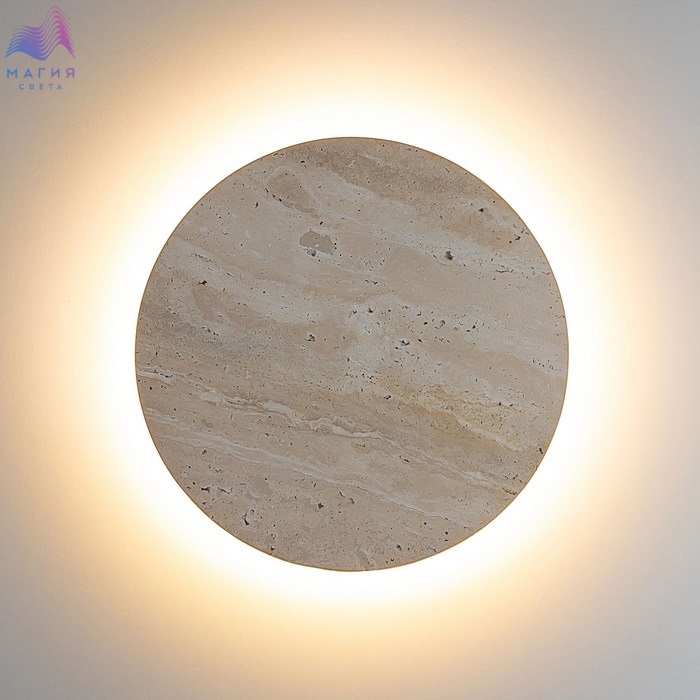 Светодиодный настенный светильник Citilux Mares CL246011. Материал: металл/травертин. Цвет: бежевый. Форма - круг.