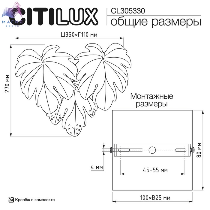 Бра Citilux DRYAD CL305330. Материал: металл/стекло. Цвет: золото/белый/прозрачный.