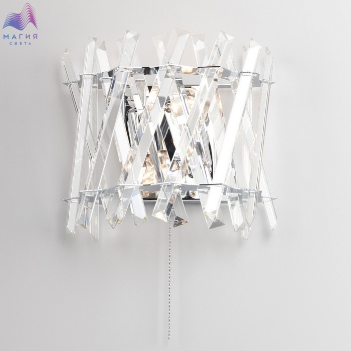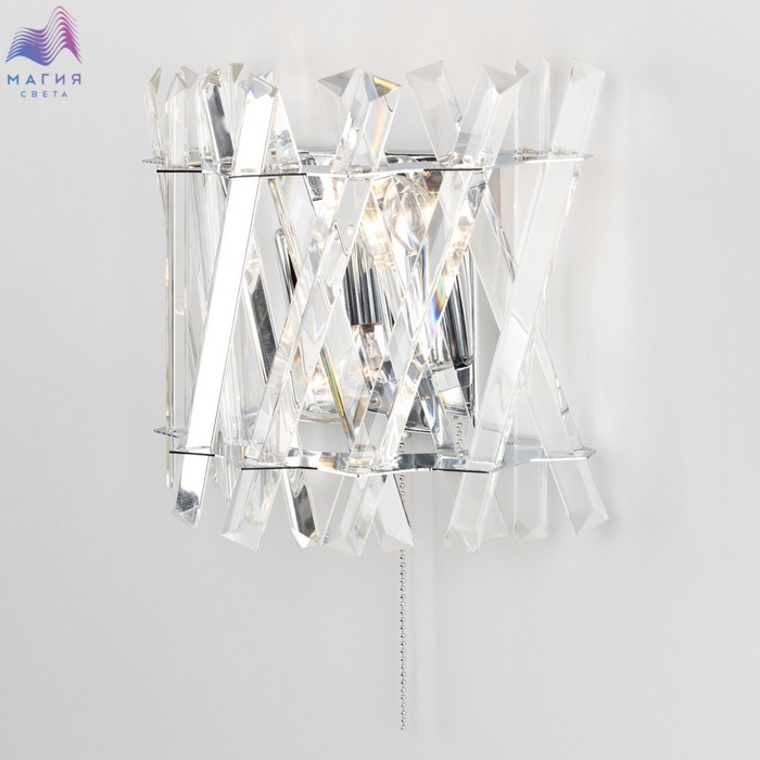 Бра Citilux Ингвар CL334421. Материал: металл/хрусталь. Цвет: хром/прозрачный. Хрустальные элементы крупные, кристально прозрачные с современной огранкой.