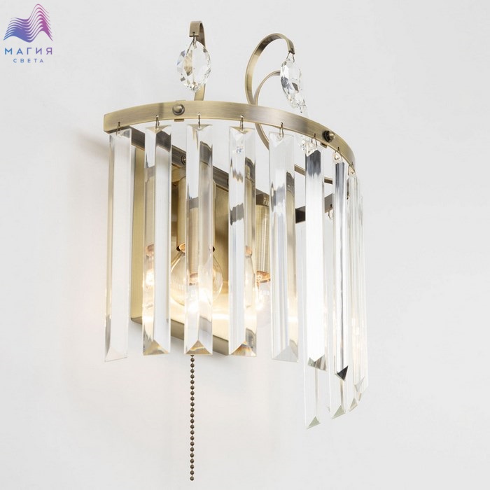Бра Citilux Инга CL335323. Материал: металл/хрусталь. Цвет: бронза/прозрачный. Светильник оснащен выключателем-шнурком.