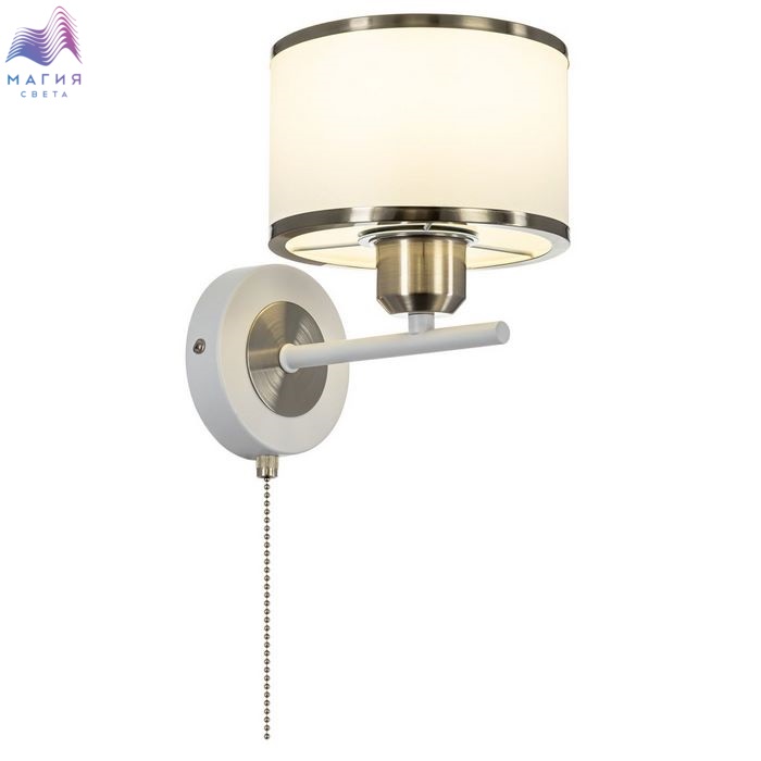 Настенный светильник Citilux ALTON CL421412. Материал: металл/текстиль. Цвет: белый/матовый хром. Цилиндрический абажур изготовлен из жемчужно-белой ткани с внутренней подложкой из оптического полимера и обрамлен металлической окантовкой. Выключатель-шнурок на корпусе.