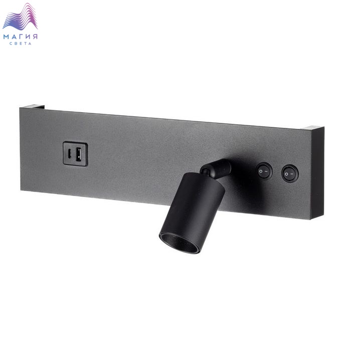 Настенный светодиодный светильник для чтения Citilux Dekart CL704461. Материал: металл, цвет: черный. Фоновая подсветка основания - вверх и вниз, поворотная подсветка для чтения. Каждый источник света оснащен отдельным выключателем. Установка светильника возможна в вертикальном или горизонтальном положении с ориентацией вправо или влево. На корпусе расположено зарядное устройство для мобильных устройств, разъёмы USB и Type-C, ток зарядки 1,5А.