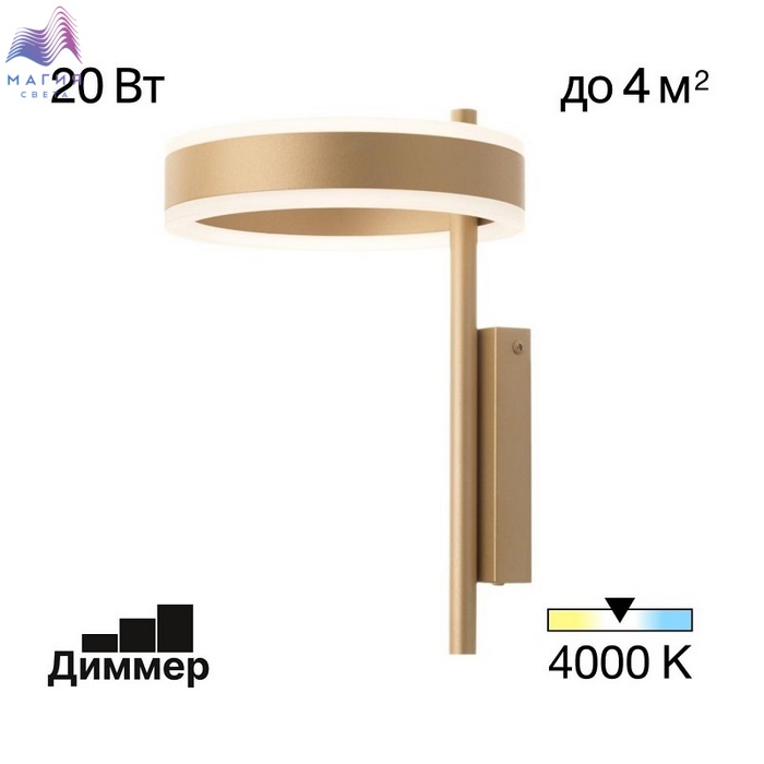 Светодиодный настенный светильник Citilux Дуэт CL719312. Материал: металл/полимер. Цвет: матовое золото/белый. Плафон в виде кольца. Изделие оснащено встроенным ступенчатым диммером. Доступно три режима яркости – 100-40-15%, управление осуществляется обычным настенным выключателем.