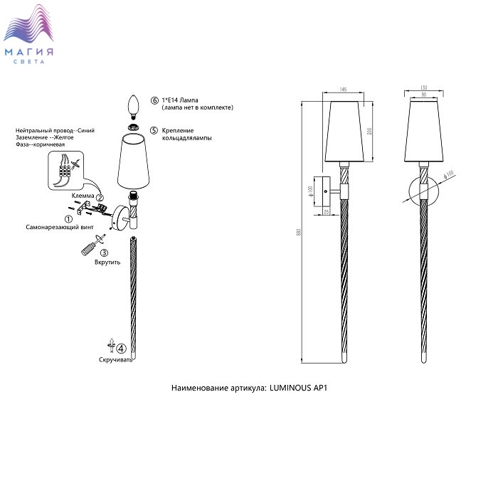 Артикул: LUMINOUS AP1 BRASS