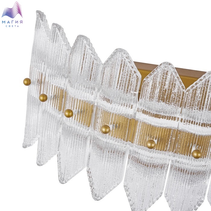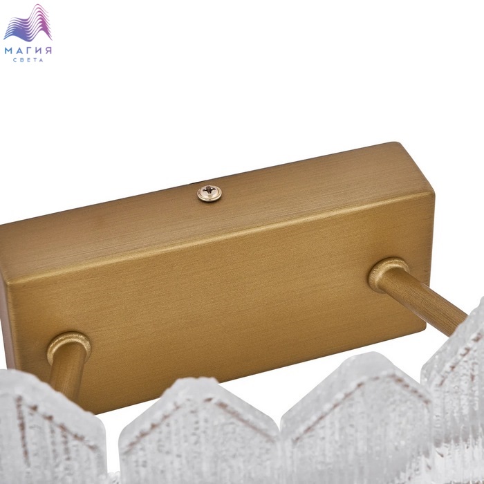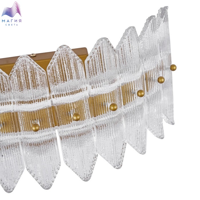 Серия Favourite Mirabella способна преобразить любое пространство. Источником света являются LED-ленты. Плафон изготовлен из стеклянных лепестков, размещенных на золотом металлическом каркасе. У подвесных люстр можно регулировать длину подвесов.
