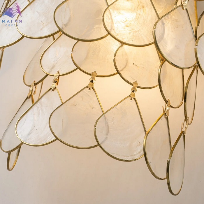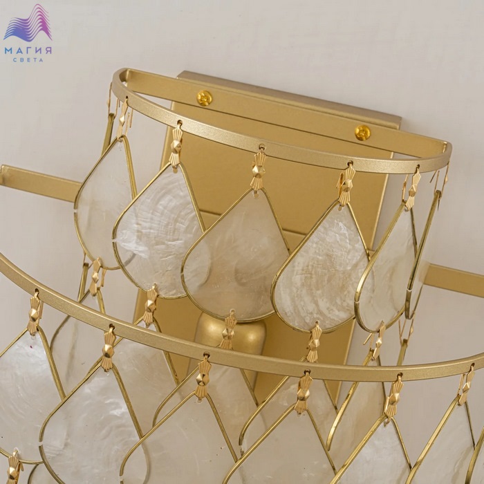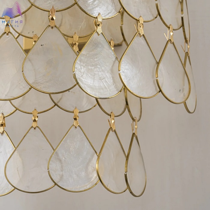 Коллекция Favourite Mollitia сочетает в своем дизайне природные материалы и элементы классического стиля. Бра и многоярусные подвесные люстры коллекции украшены декоративными элементами из тонких перламутровых пластин натуральной морской ракушки.