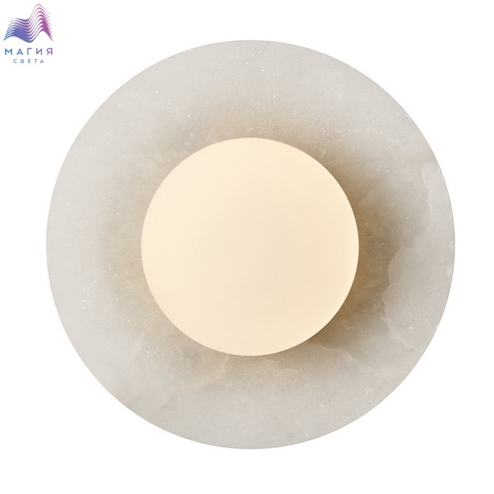 Серия Freya Cave исполнена в современном стиле с учетом природных мотивом. Арматура выкрашена в латунный цвет. Плафон из стекла дополнен алебастровым декоративным элементом.
