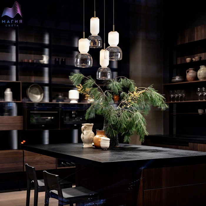 Серия Freya Ore имеет необычную форму плафонов - песочные часы. Подвесы словно бы парят в воздухе, наполняя пространство мягким сиянием. Арматура выкрашена латунной краской. В коллекции на выбор представлены 2 цвета стекла: янтарный и белый с прозрачной растяжкой.