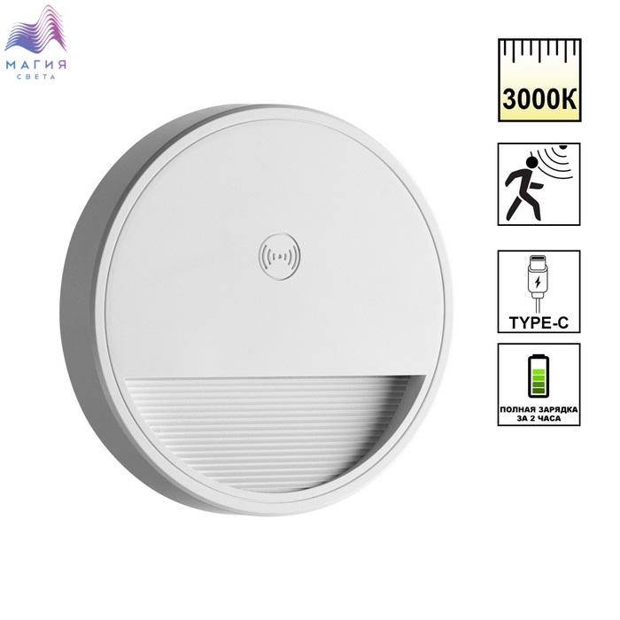 Светодиодные светильники для лестниц Novotech VESPERA. Светильник оснащен встроенным аккумулятором повышенной емкости (1000 мА⋅ч), способного поддерживать непрерывную работу в течение 90 дней. Быстрая зарядка занимает всего 2 часа. Модель снабжена датчиком движения (радиус 3 метра).