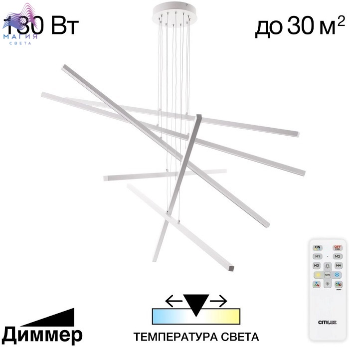 Светодиодный подвесной светильник Citilux Стиг CL203260. Материал: металл/полимер. Цвет: белый. При монтаже можно устанавливать штанги-модули в разных положениях, на разной высоте, создавая свой уникальный дизайн. Пульт ДУ в комплекте (плавная регулировка яркости 10% - 100%, смена цветовой температуры в диапазоне 3000K - 5500K).
