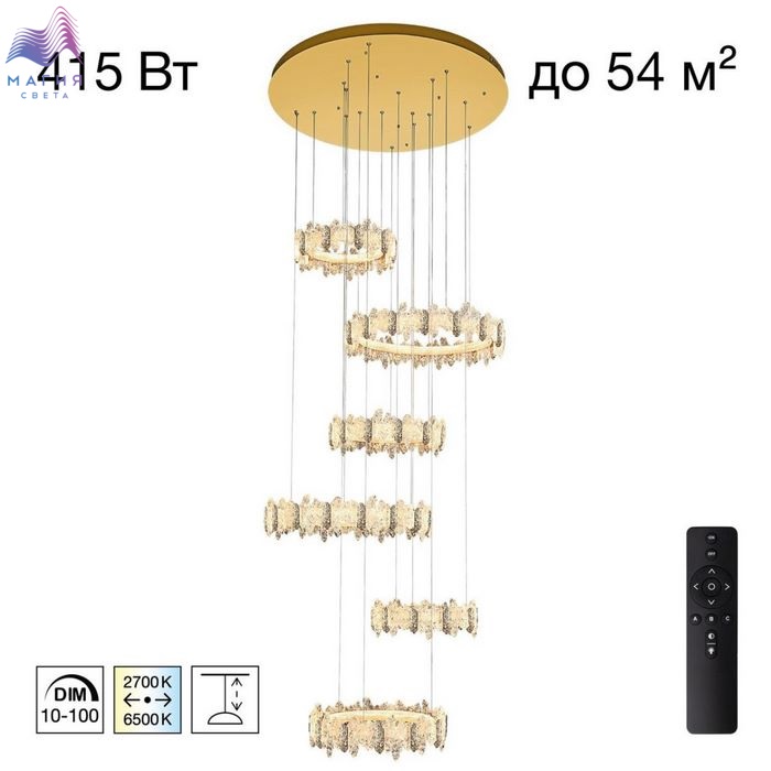Подвесная люстра с пультом Citilux LAVA CL250192. Материал: металл/полимер. Цвет: золото/прозрачный. Встроенный диммер позволяет плавно регулировать яркость и цветовую температуру освещения, создавая атмосферу по своему вкусу. Радиопульт в комплекте.