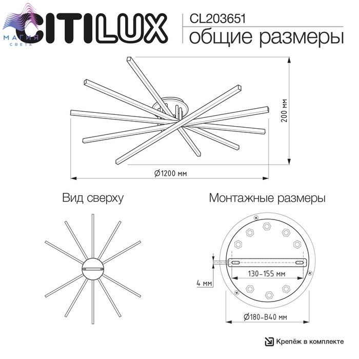 Потолочная светодиодная люстра Citilux Trent CL203651. Материал: металл/полимер. Цвет: черный/белый. У люстры есть изящная подсветка потолка. Пульт ДУ в комплекте (плавная регулировка яркости освещения и смена цветовой температуры света).