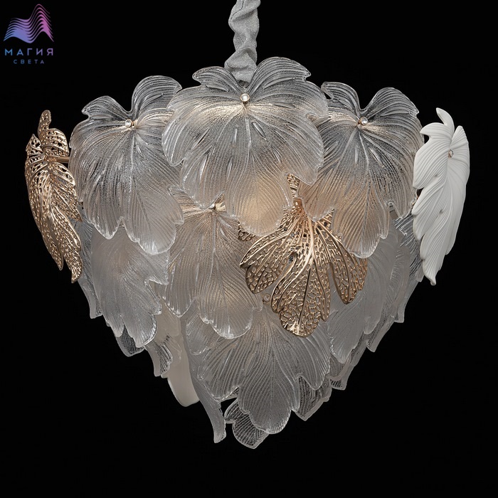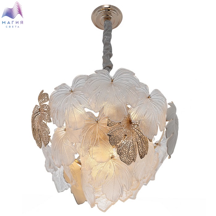 Подвесная люстра Citilux DRYAD CL305150. Материал: металл/стекло. Цвет: золото/белый/прозрачный. Высота люстры регулируется, ее можно установить на любой потолок, в том числе, и на натяжной.