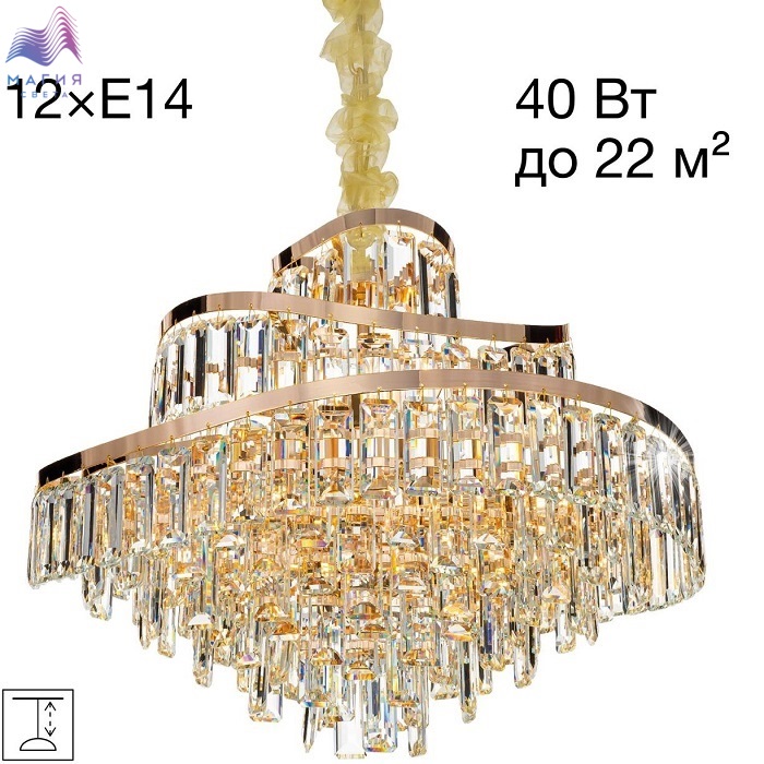 Хрустальная подвесная люстра Citilux NAIAD CL315162. Материал: металл/хрусталь. Цвет: золото/прозрачный. Площадь освещения - от 11 до 22м². Высота легко регулируется при монтаже.