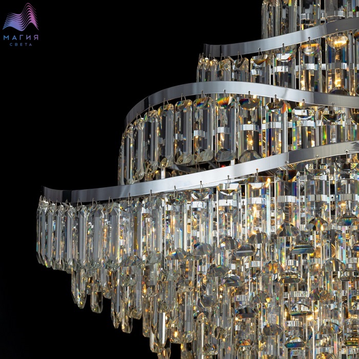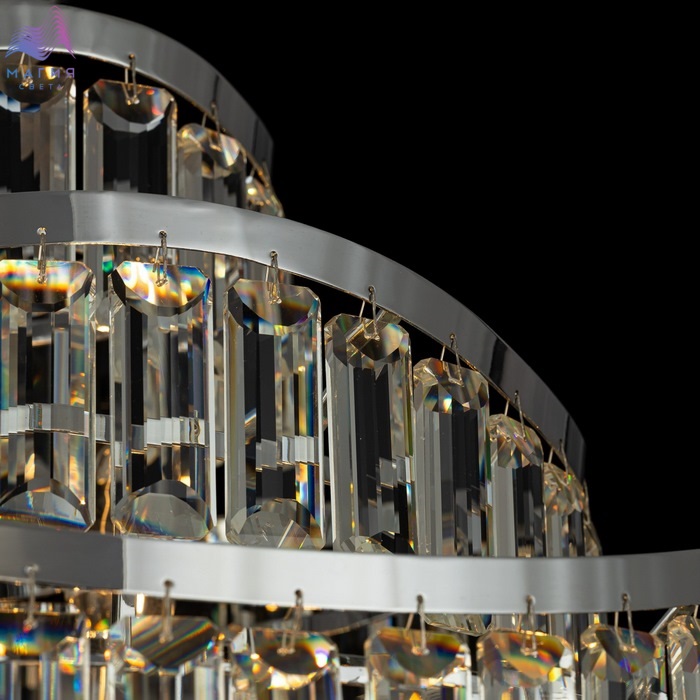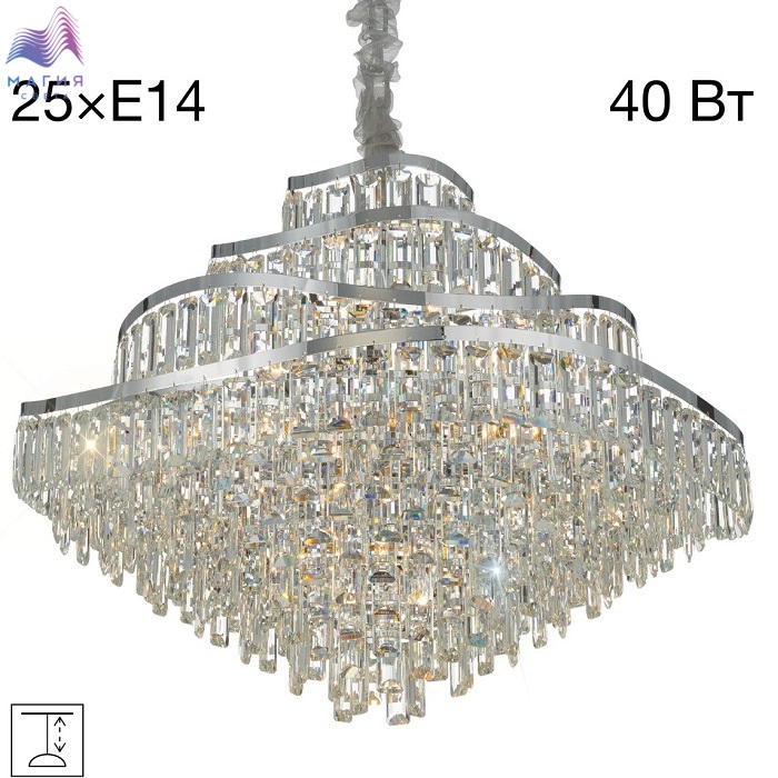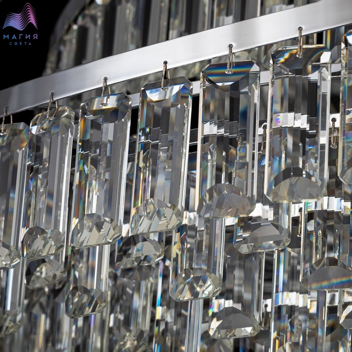 Хрустальная подвесная люстра Citilux NAIAD CL315191. Материал: металл/хрусталь. Цвет: матовый хром/прозрачный. Площадь освещения - от 16 до 33м². Высота легко регулируется при монтаже.