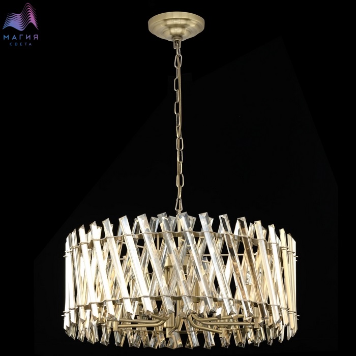 Хрустальная люстра Citilux Ингвар CL334283. Материал: металл/хрусталь. Цвет: бронза/шампань. Люстра восьмирожковая с хрустальным абажуром цилиндрической формы. Хрустальные элементы крупные, с современной огранкой, модного оттенка шампань.