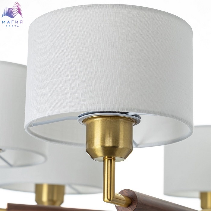 Подвесная люстра Citilux SHERMAN CL436172. Материал: металл/текстиль. Цвет: бронза/венге/молочно-белый. Семь рожков с абажурами в форме цилиндра, изготовленных из молочно-белой ткани с чуть шероховатой текстурой. Высота подвеса регулируется.