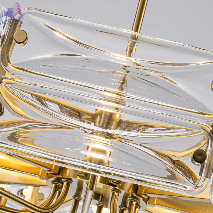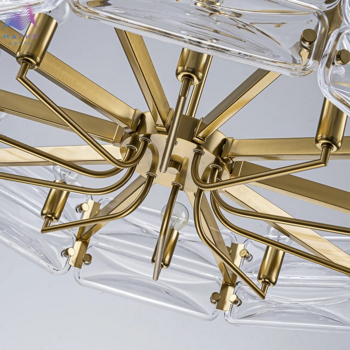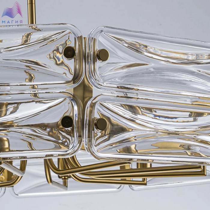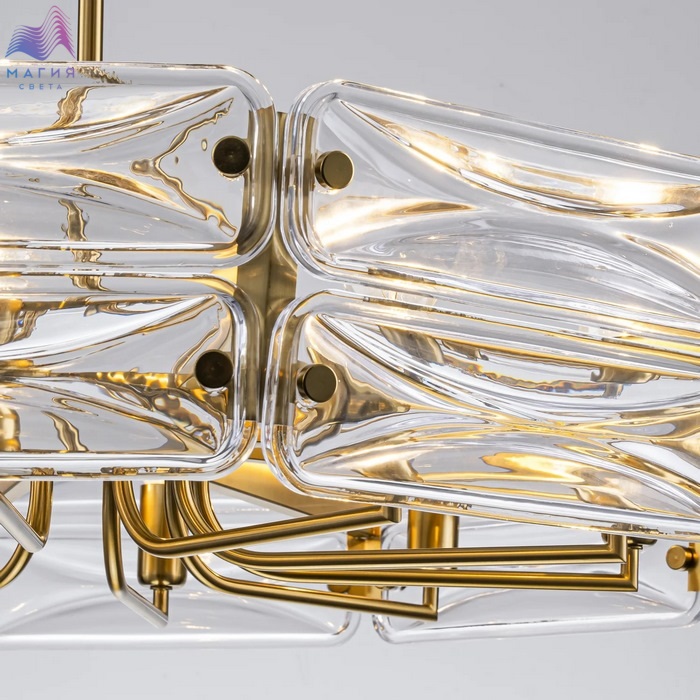 Светильники коллекции Favourite Glacies становятся важным элементом классического интерьера. Люстры на штанге и бра имеют прочное основание из металла с покрытием под латунь, украшенное массивными пластинами из прозрачного стекла со скругленными углами.