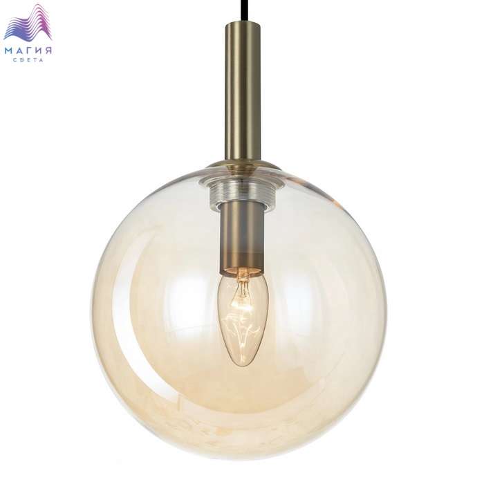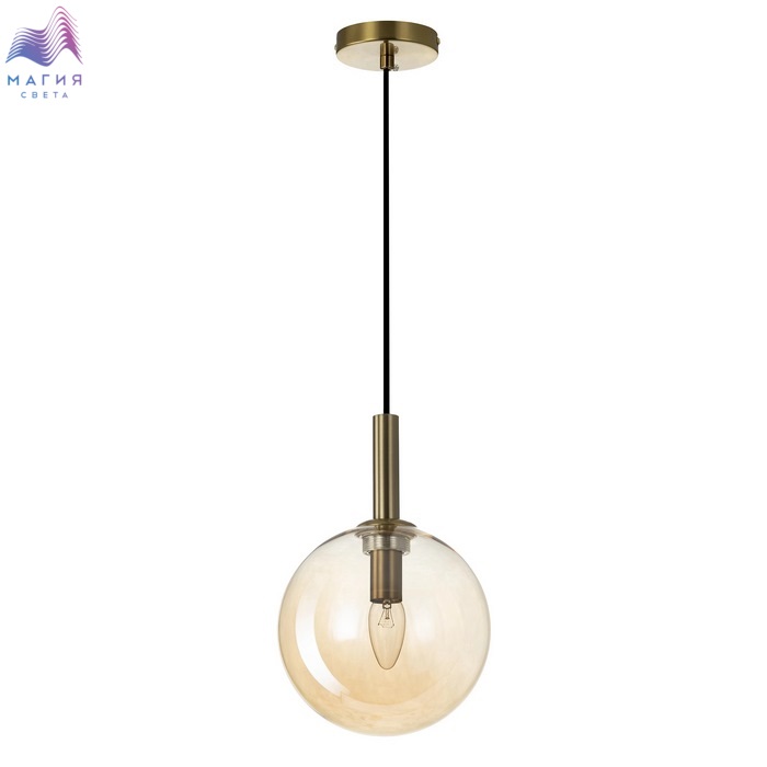 Подвесной светильник Citilux Лорен CL146013. Материал: металл/стекло. Цвет: бронза/шампань. Плафон в форме шара изготовлен из прозрачного стекла светло-янтарного оттенка. Высота легко регулируется при установке от 37см до 1,55м.