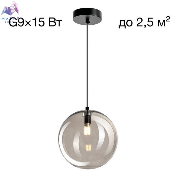 Подвесной светильник Citilux ORTON CL202021. Материал: металл/стекло. Цвет: матовый черный/дымчатый. Плафон в форме шара. Прозрачный стеклянный шар с лёгким дымчатым оттенком, подвешенный на чёрном матовом металлическом основании, выглядит эффектно при любом освещении.