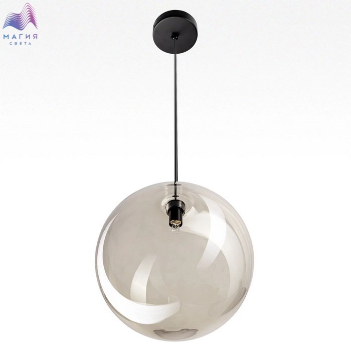 Подвесной светильник Citilux ORTON CL202041. Материал: металл/стекло. Цвет: черный/дымчатый. Плафон в форме шара. Прозрачный стеклянный шар с лёгким дымчатым оттенком, подвешенный на чёрном матовом металлическом основании, выглядит эффектно при любом освещении.