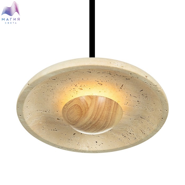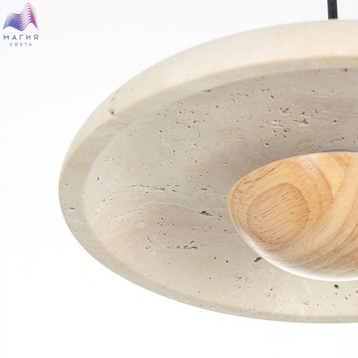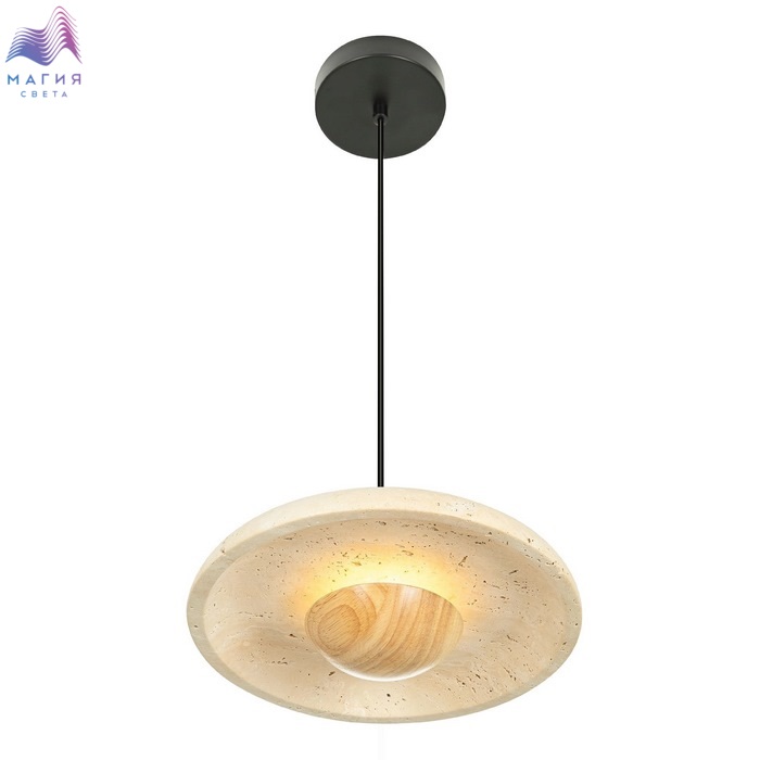Светодиодный подвесной светильник Citilux Mares CL246019. Материал: металл/травертин. Цвет: черный/бежевый. Плафон из натурального камня травертина дополнен декоративным элементом — декоративным «блюдцем» кремового оттенка.