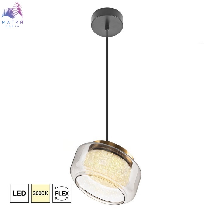 Подвесной каскадный светодиодный светильник Citilux SIGNATURE CL247011. Материал: металл/стекло. Цвет: черный/дымчатый. Плафон с металлическим основанием бронзового оттенка, двойной конфигурации: внутренний плафон — из прозрачного стекла с хрустальной крошкой, внешний — из дымчатого стекла. Источником света служат встроенные светодиоды с цветовой температурой 3000К.
