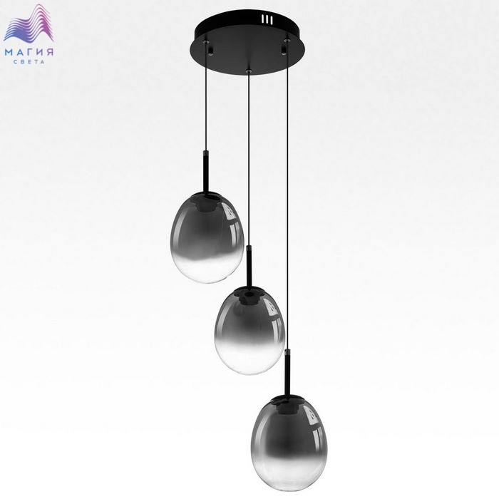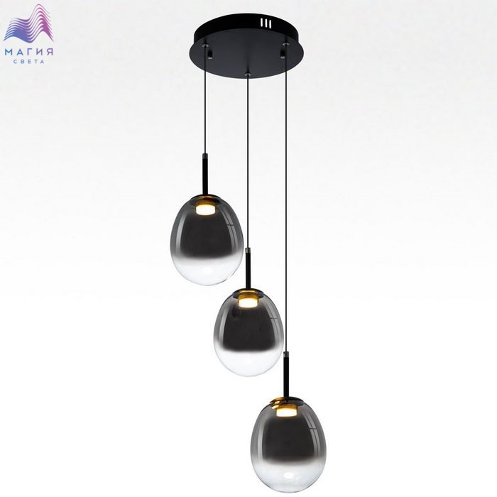 Подвесной каскадный светодиодный светильник Citilux SIGNATURE CL247022. Материал: металл/стекло. Цвет: черный/дымчатый. 3 закрытых плафонов овальной формы, из дымчатого стекла. Источником света служат встроенные светодиоды с цветовой температурой 3000К.