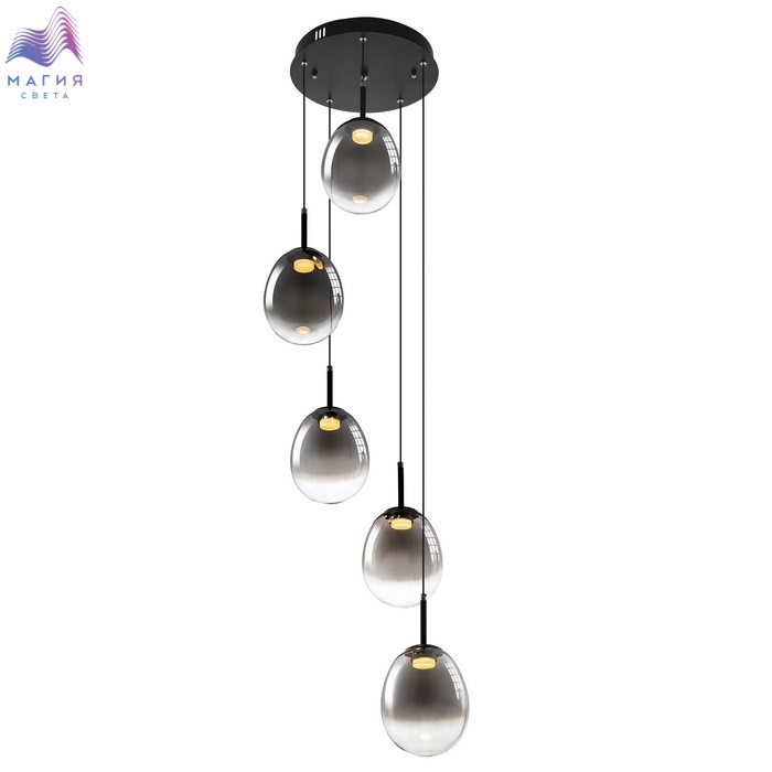 Подвесной каскадный светодиодный светильник Citilux SIGNATURE CL247023. Материал: металл/стекло. Цвет: черный/дымчатый. 5 закрытых плафонов овальной формы, из дымчатого стекла. Источником света служат встроенные светодиоды с цветовой температурой 3000К.