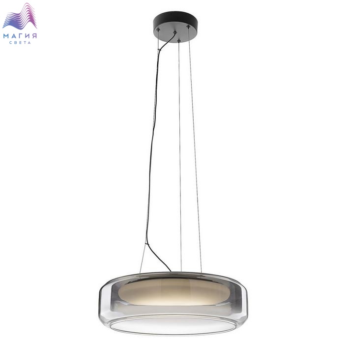 Подвесной каскадный светодиодный светильник Citilux SIGNATURE CL247044. Материал: металл/стекло. Цвет: черный/дымчатый. Подвес двойной конфигурации: внешний плафон из прозрачного стекла с равномерной дымчатой тонировкой, внутренний — из белого матового стекла. Источником света служат встроенные светодиоды с цветовой температурой 3500К.