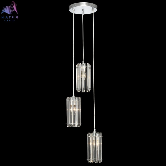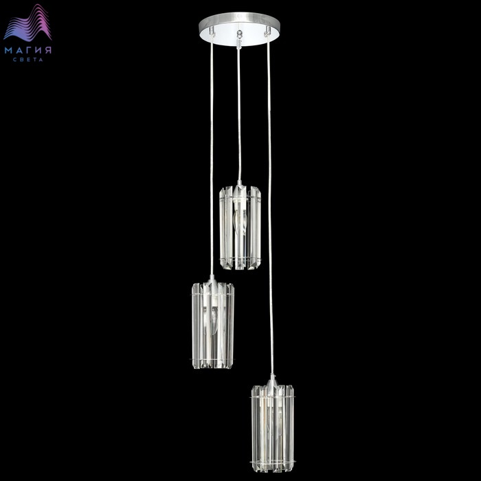 Подвесной хрустальный светильник Citilux Джейн CL306031. Материал: металл/хрусталь. Цвет: хром/прозрачный. Каждый плафон цилиндрической формы, крупные хрустальные элементы кристально прозрачные с современной огранкой. Высота регулируется при установке.