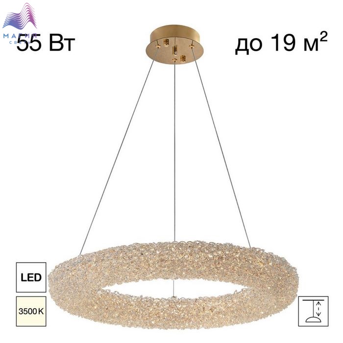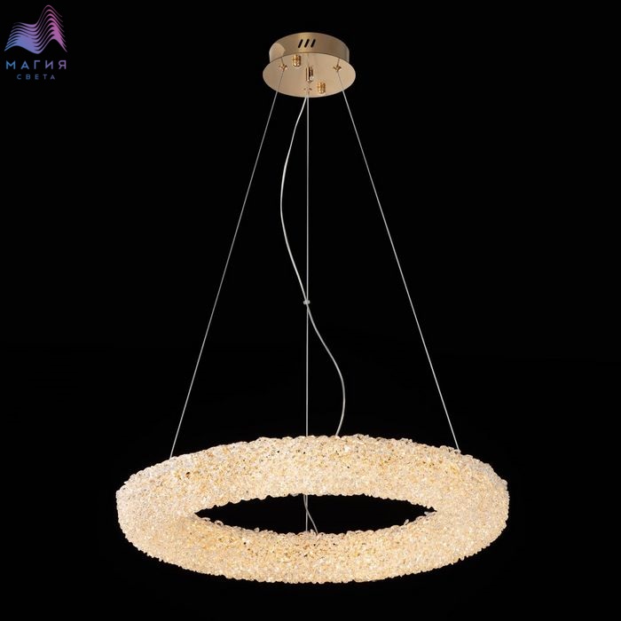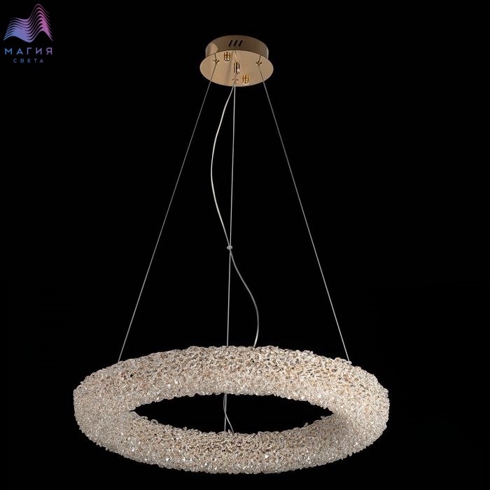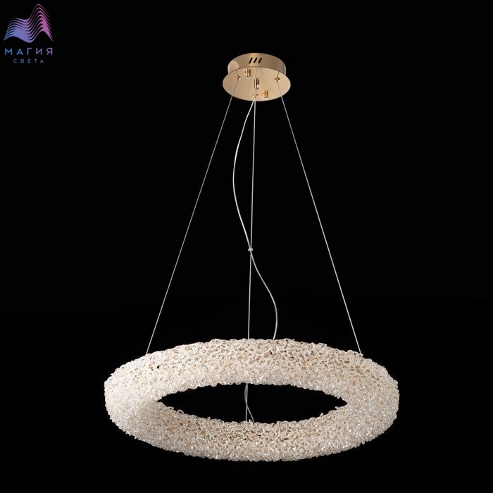 Хрустальный подвесной светильник Citilux CLOUDY CL323162. Материал: металл/хрусталь. Цвет: золото/прозрачный. Подвесное кольцо составлено из множества тонких золотых колечек, внутри каждого из них закреплен кристаллик из прозрачного хрусталя. Тонкие подвесные тросы практически незаметны, создавая ощущение, что светильник парит в воздухе.