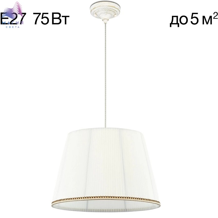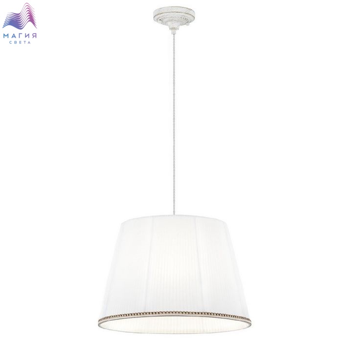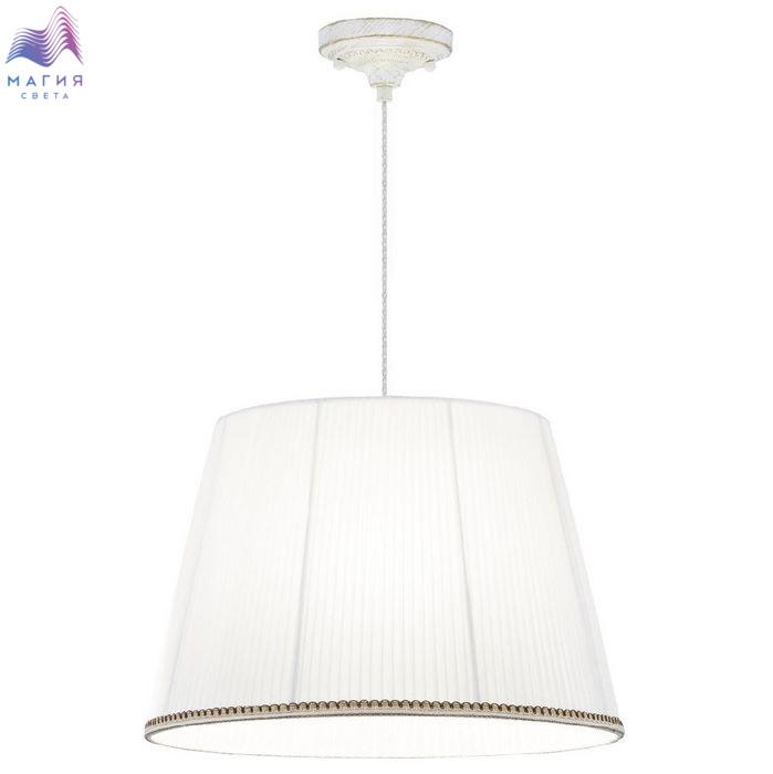 Подвесной светильник с абажуром Citilux Вена CL402020. Материал: металл/текстиль. Цвет: белый с золотом/белый. Тканевый абажур из белой плиссированной полупрозрачной органзы окантован изящной тесьмой. Высота светильника легко регулируется в диапазоне от 35см до 1,45м.