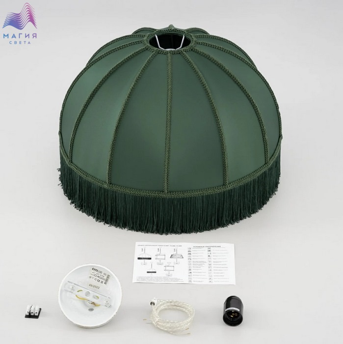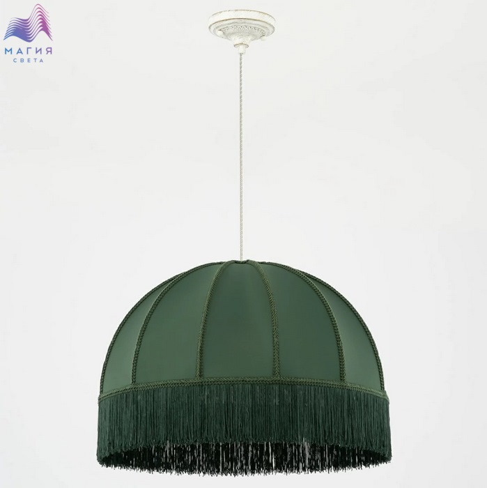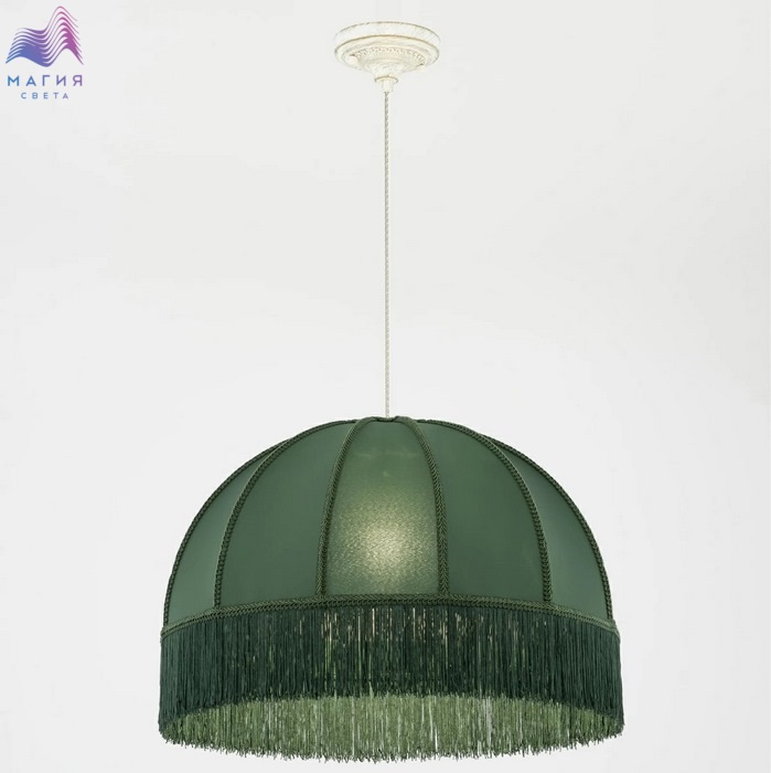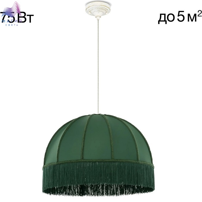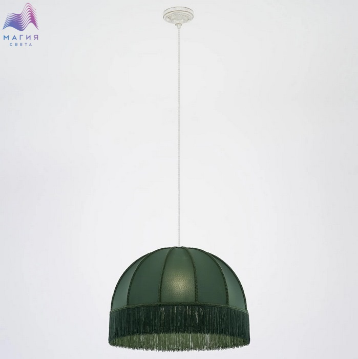 Подвесной светильник Citilux Базель CL407022. Материал: металл/текстиль. Цвет: белый с золотом/зеленый. Абажур из гладкой ткани зелёного цвета обшит бахромой и декорирован ажурной тесьмой. Высота светильника легко регулируется при установке в диапазоне от 40 см до 1,6 м.