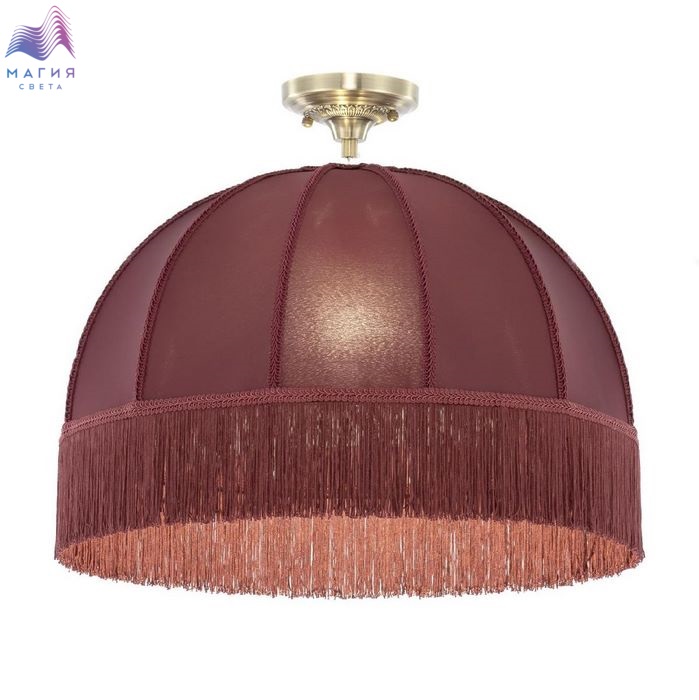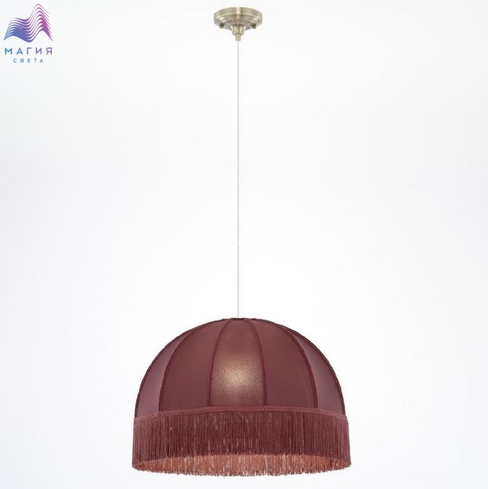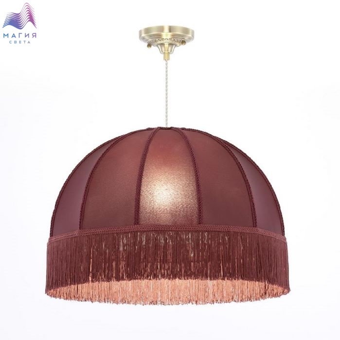 Подвесной светильник Citilux Базель CL407033. Материал: металл/текстиль. Цвет: бронза/красный. Абажур из гладкой тёмно-вишнёвой ткани обшит бахромой и декорирован ажурной тесьмой. Высота светильника легко регулируется при установке в диапазоне от 40 см до 1,6 м.