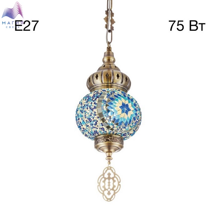 Подвесной светильник Citilux Каир CL419116. Материал: металл/мозаичное стекло. Цвет: бронза/синий. Плафон в форме шара, декорированный стеклянной мозаикой с сине-голубыми оттенками, создаёт мягкое свечение, наполняющее пространство чувством свежести и гармонии.