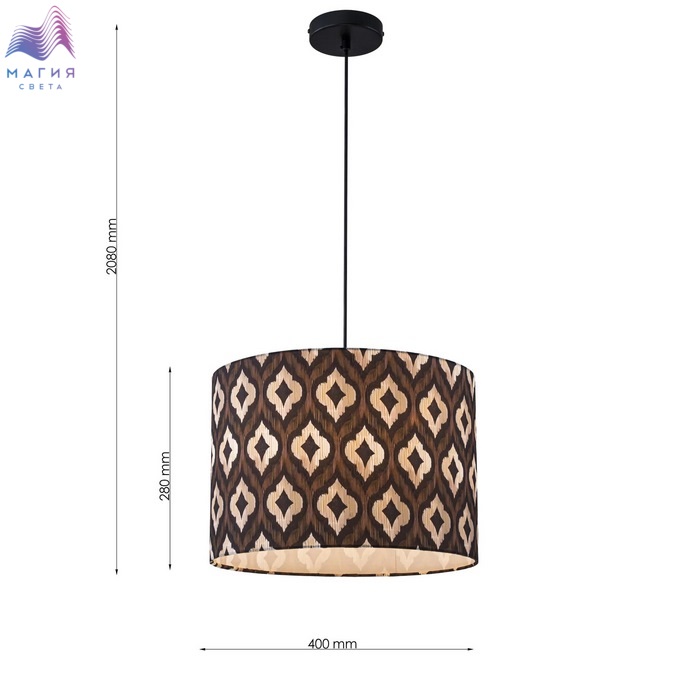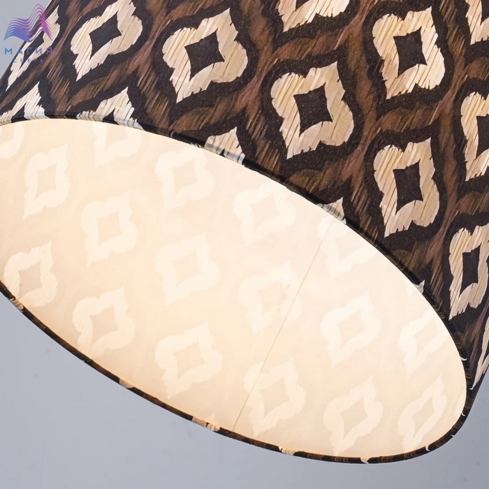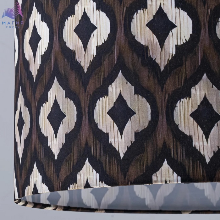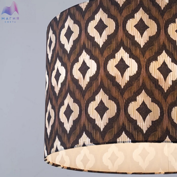 Коллекция подвесных светильников Favourite Etiam создает уютную атмосферу. Темно-коричневые абажуры из натурального хлопка, украшенные разнообразными светло-бежевыми узорами в форме арабесок.