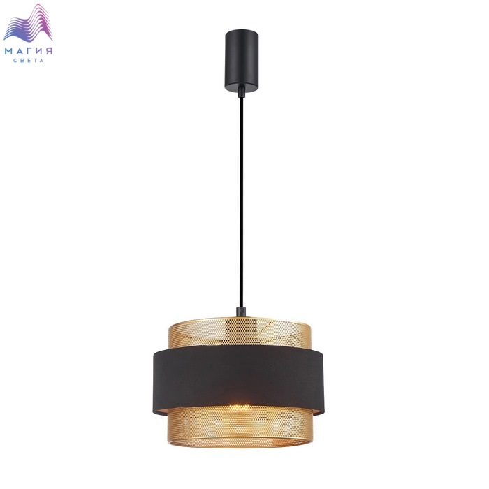 Серия F-Promo Fortis представлена настольными лампами, торшерами и подвесными светильниками в стиле лофт. Ключевые элементы дизайна — золотистый абажур из перфорированной металлической сетки, дополненный чёрным тканевым поясом.