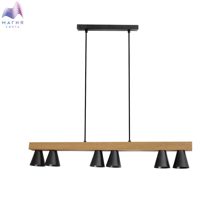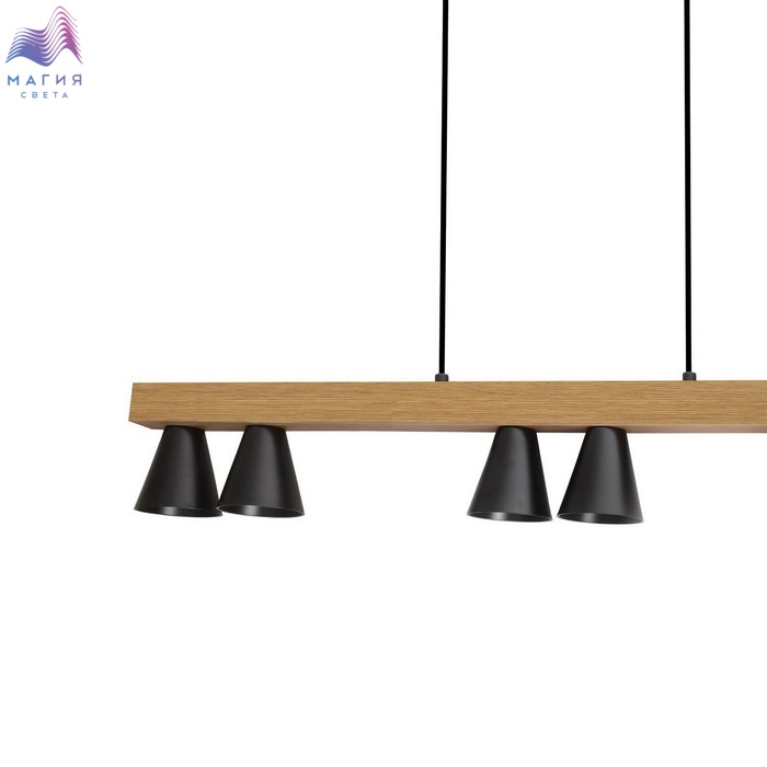 Подвесные светильники Favourite Piffero исполнены в современном стиле. Каркас светильника сочетает два материала - дерево и металл в черном цвете. Плафоны также выполнены из металла черного цвета. Длину проводов можно отрегулировать при монтаже.
