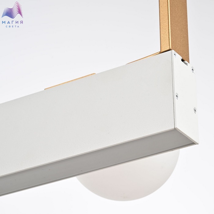 Подвесные светильники Favourite Fitirum исполнены в двух цветах: белом и черном. Металлический каркас дополнен золотыми деталями. Плафоны изготовлены из акрила. Модели оснащены 2 источниками света: встроенная светодиодная лента и лампы внутри плафонов.