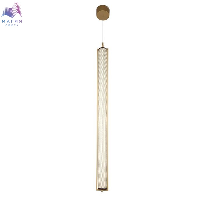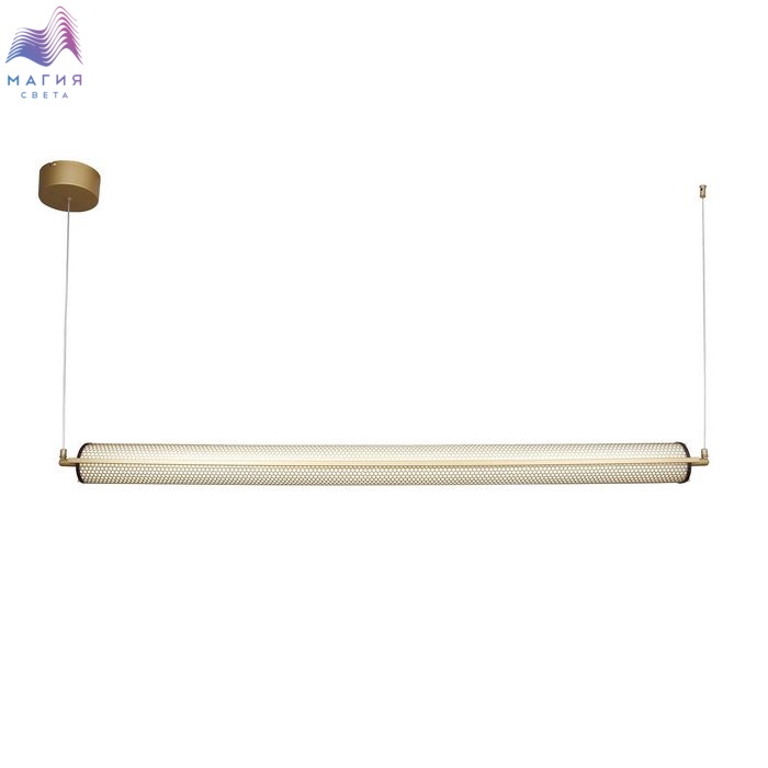 Светильники Favourite Ligero выполнены в современном стиле с элементами лофт. Удлиненный цилиндрический плафон из белого акрила покрыт узорной решеткой в цвете матовое золото, как и металлический каркас всего светильника. Декоративные заглушки на концах плафона окрашены в контрастный золотому - коричневый. Крепление подвеса может быть как горизонтальным, так и вертикальным.