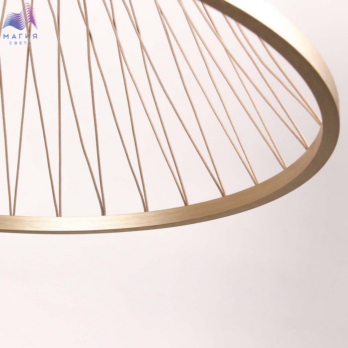 Подвесы Favourite Fibra представлены в двух размерах и двух цветах: матовом черном и матовом золотом. Абажур состоит из двух дисков, словно парящих в воздухе, переплетенных тонкими нитями.