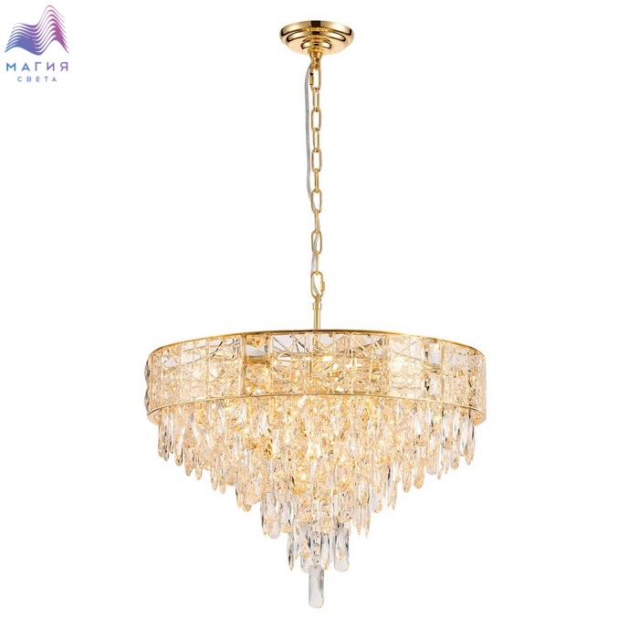 Хрустальные люстры и бра Favourite Elysium притягивают восхищенные взгляды. Модели продуманы до мелочей. Золотой каркас обильно декорирован каскадом из прозрачного хрусталя с геометрическим узором. Отражая свет, хрусталь создает волшебную игру света.