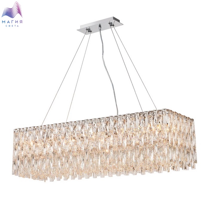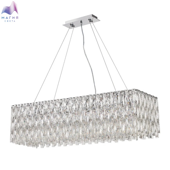 Коллекция светильников Favourite Robby включает в себя подвесные люстры и светильники, а также бра. Хрустальные элементы имеют прямоугольную форму и собраны в цепочки. Металлический каркас представлен в хромированном или золотом цветах.