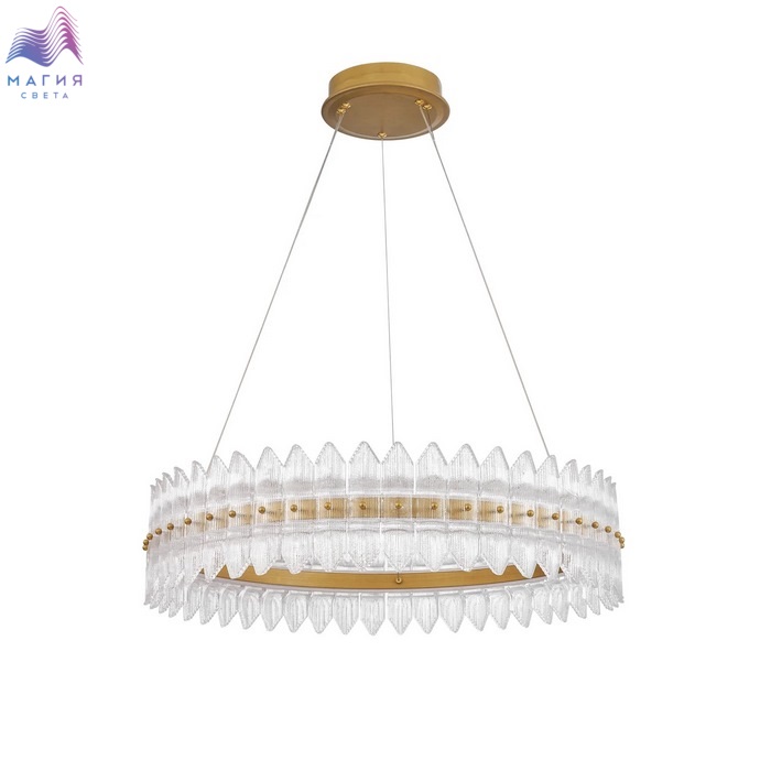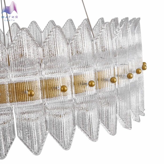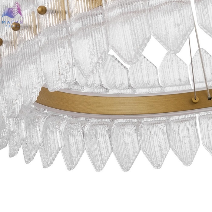 Серия Favourite Mirabella способна преобразить любое пространство. Источником света являются LED-ленты. Плафон изготовлен из стеклянных лепестков, размещенных на золотом металлическом каркасе. У подвесных люстр можно регулировать длину подвесов.