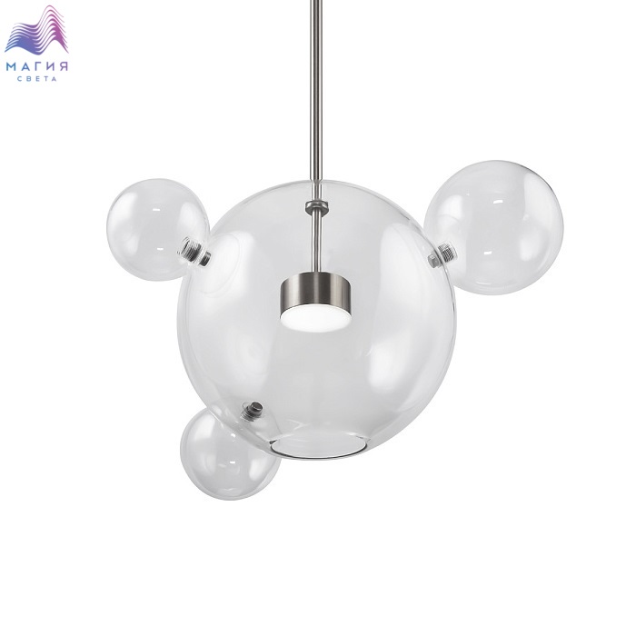 Серия Freya Amoris станет эффектным акцентом в современном интерьере. Арматура выполнена из металла и окрашена в цвет латуни или никеля, а плафон-сфера – из глянцевого прозрачного стекла. Яркие LED-источники подчеркивают нетривиальную форму люстры, обеспечивают ровный свет без мерцаний и сокращают потребление электроэнергии. Данный светильник не имеет определенной цветовой гаммы, она меняется от 3000-7000 с помощью переключателя. Подвесной светильник удобно использовать для подсветки зон отдыха, диванных групп в гостиной, барной стойки и островов на кухне.