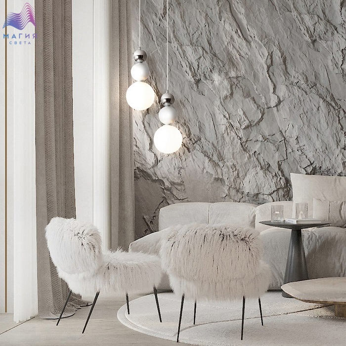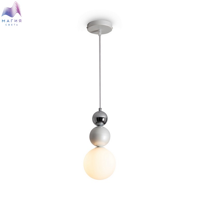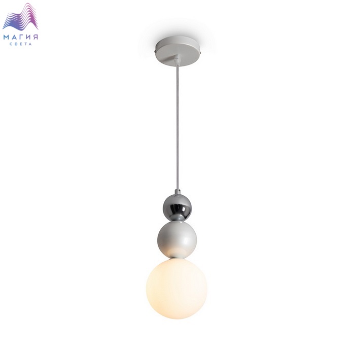 Подвесной светильник Freya Pearl полностью оправдывает свое название. Основание модели декорировано двумя металлическими шарами хромированного и серого цветов, венчает композицию стеклянный плафон молочного белого цвета. Дилну провода можно отрегулировать при установке.