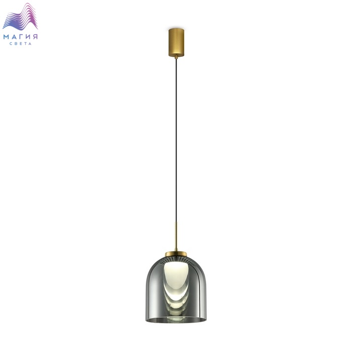Коллекция Freya Fume. Арматура изготовлена из металла, цвет покрытия - латунь. Плафоны из прозрачного стекла с дымчатым оттенком в форме овала, круга или конуса. Универсальный минималистичный дизайн позволяет составлять комбинации из нескольких подвесов. Регулируемая высота. LED-источник устоплен в основании плафона. Цветовая температура - 3000K.