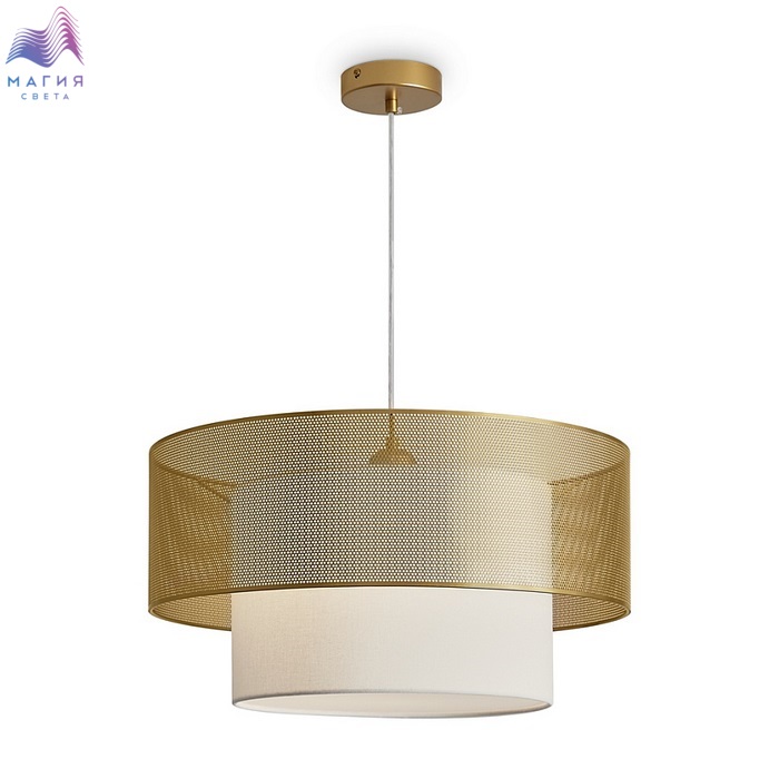 Подвесной светильник Freya Lattice создает особую атмосферу благодаря оригинальному двухслойному дизайну. Внешний плафон изготовлен из перфорированного металла в оттенке матового золота, внутренний - из ткани белого цвета. Свет, проходящий сквозь двойной абажур, создает мягкое, уютное сияние, превращая освещение в элемент декора.